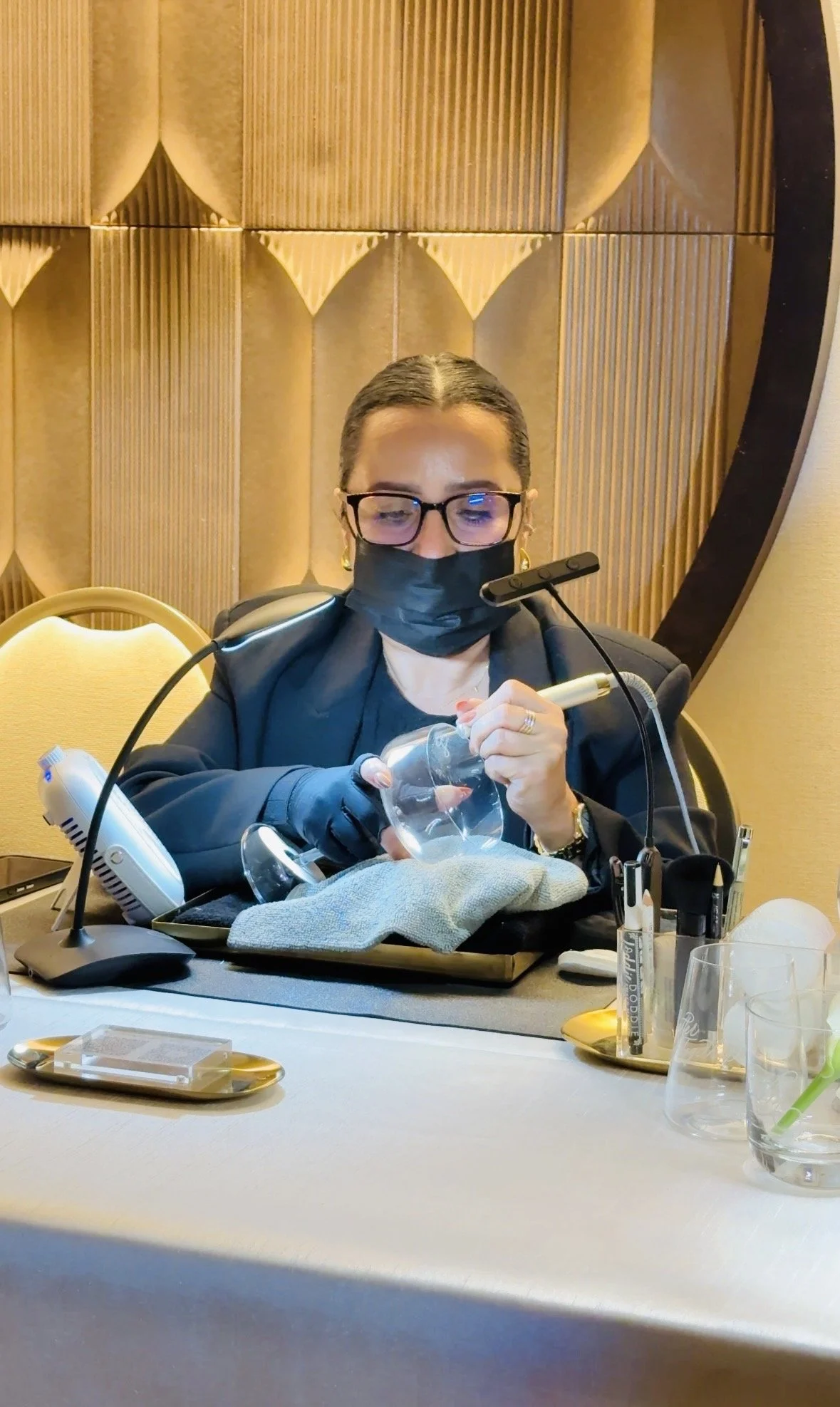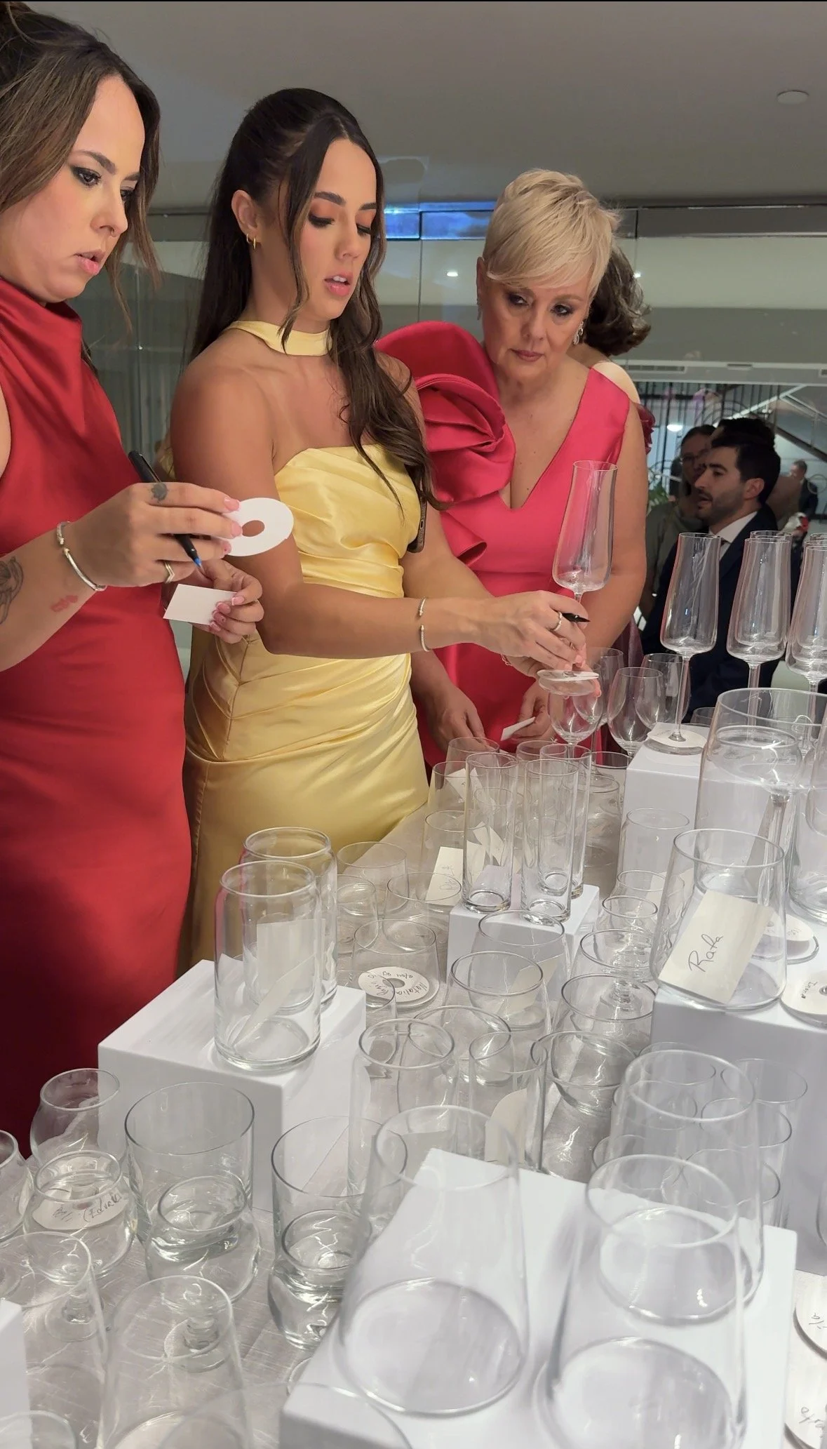 For five unforgettable hours, over 130 glass pieces were engraved on site : wine glasses, champagne flutes, rock glasses, cordial glasses, each one personalized in the moment. Initials, names, meaningful dates, short phrases, and heartfelt words transformed fine glassware into lasting keepsakes.